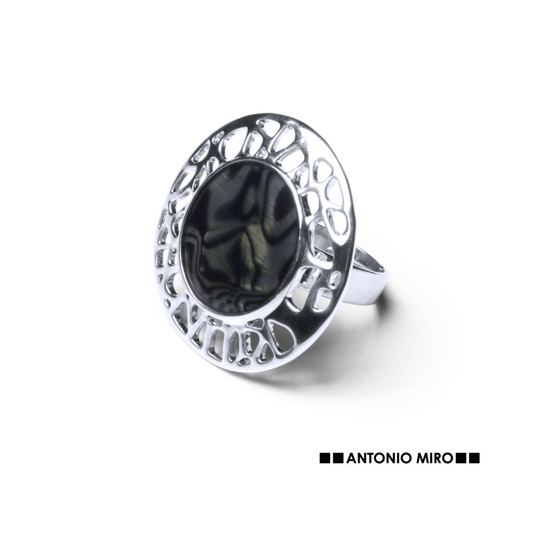 Anello regolabile by Antonio Miró in metallo con inserti in resina. Presentato in una pouch in similpelle con logo del marchio.