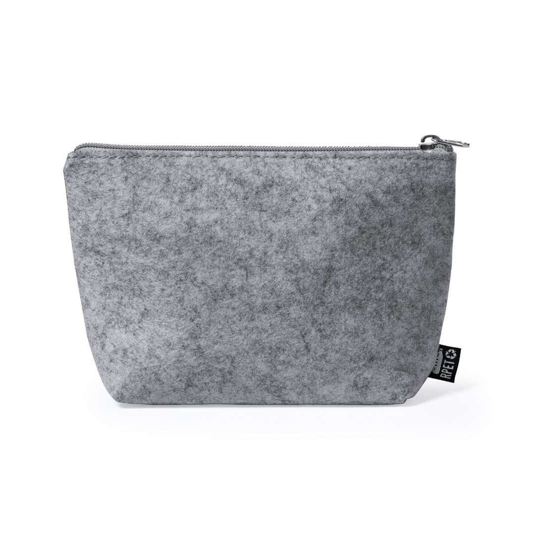 Beauty case della linea natura in resistente feltro RPET, risultato dall'unione del processo di riciclo delle materie plastiche con la tecnica millenaria della lavorazione del feltro, dando vita a un materiale di eco-tendenza che, oltre a essere di origine riciclata, diventa anche riciclabile. Con chiusura a zip, manico in tinta ed etichetta esterna con logo RPET.