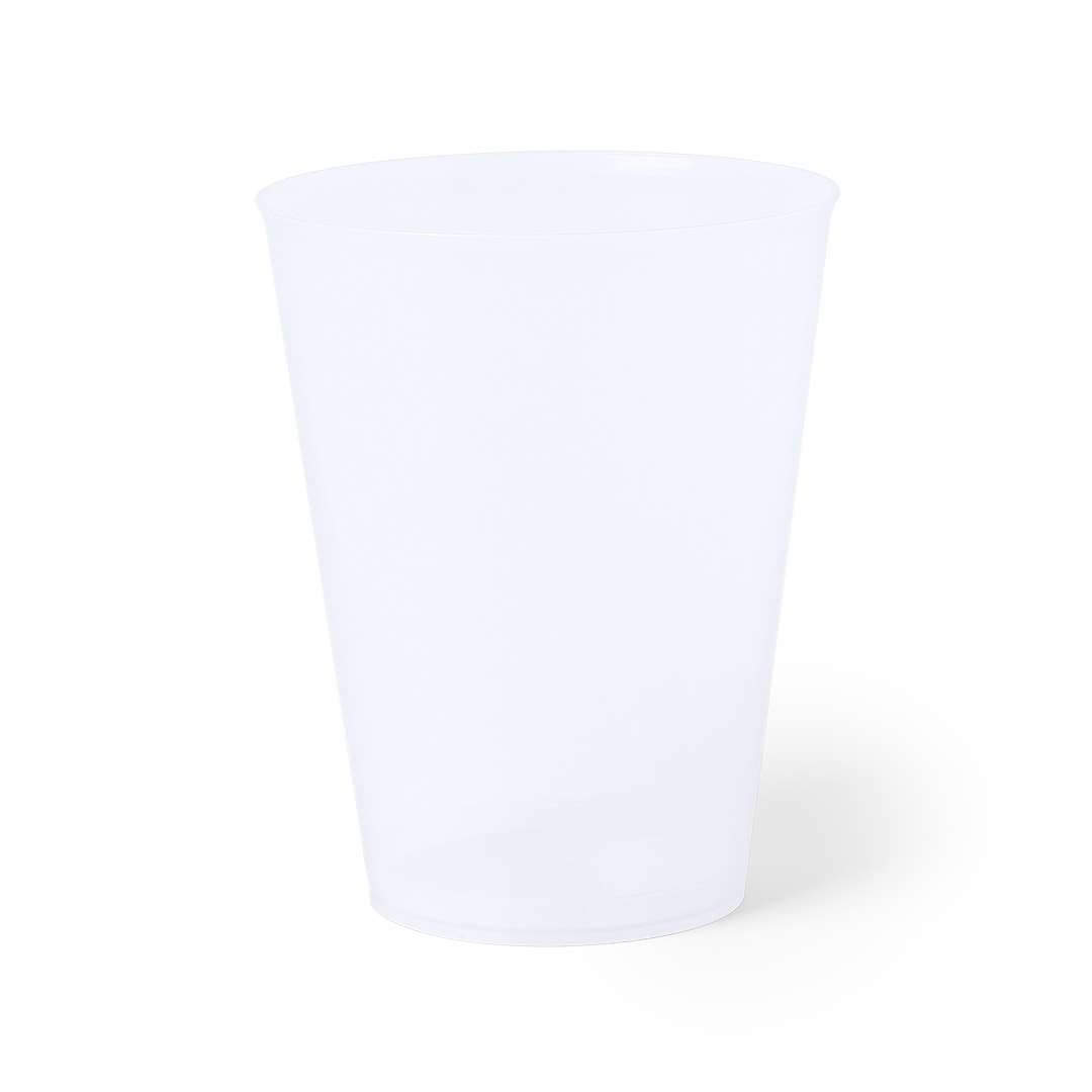Vetro da 500 ml in materiale PP resistente e flessibile. Riutilizzabile e con finitura traslucida.