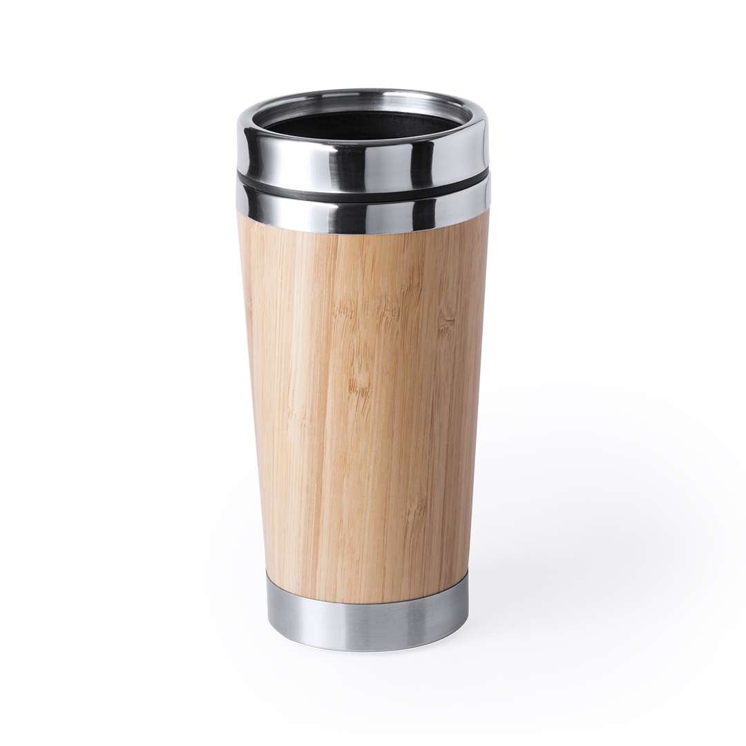 Bicchiere da tavolo da 500 ml con interno in acciaio inox ed esterno in legno di bambù. Con coperchio dosatore di sicurezza e apertura facilitata. È ideale per la tua scrivania, tavolo o qualsiasi superficie dove puoi goderti la tua bevanda preferita.