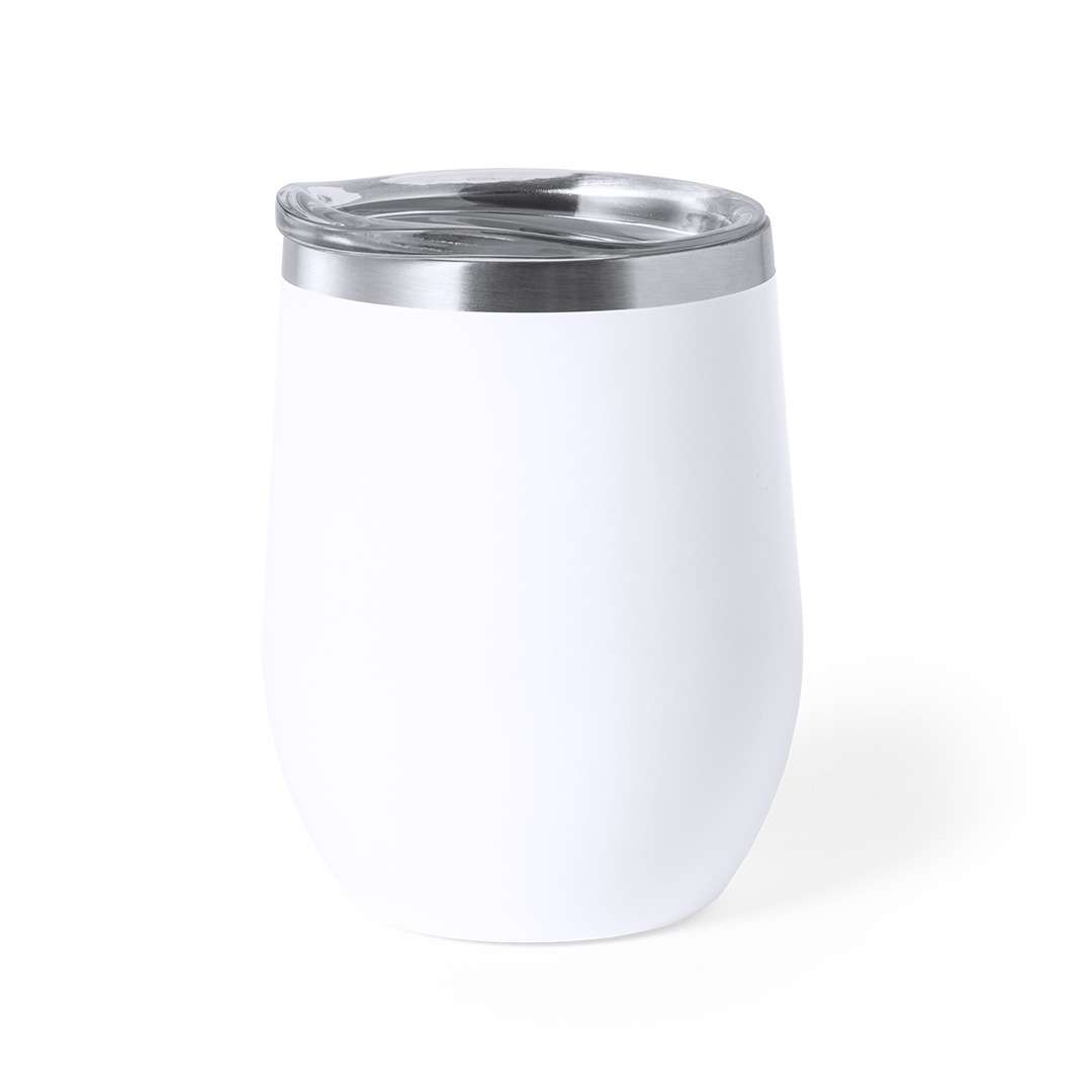 Bicchiere termico da tavolo in acciaio inox, con doppia parete e capacità di 350 ml. Include un coperchio con dispenser e apertura facilitata. Disponibile in un'ampia gamma di colori. Confezionato singolarmente in una scatola dal design accattivante.