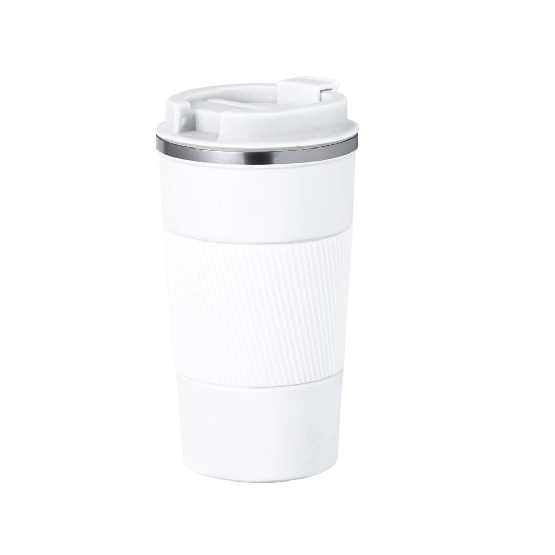 Bicchiere termico da tavolo in acciaio inox a doppia parete con capacità di 400 ml di colore opaco. Con dosatore nel coperchio e apertura facilitata, fascia in silicone abbinata e base antiscivolo, senza BPA. È ideale per la tua scrivania, tavolo o qualsiasi superficie dove puoi goderti la tua bevanda preferita.