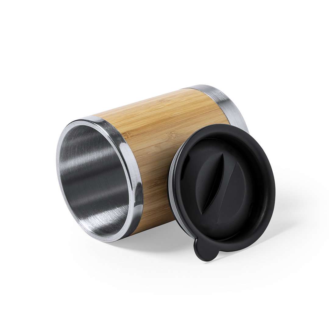 Bicchiere da tavolo con capacità di 300 ml. Corpo in una combinazione di bambù e acciaio inox a doppia parete per una migliore e più duratura conservazione della temperatura. Con un originale tappo dosatore nero ad apertura facilitata. È ideale per la tua scrivania, tavolo o qualsiasi superficie dove puoi goderti la tua bevanda preferita.