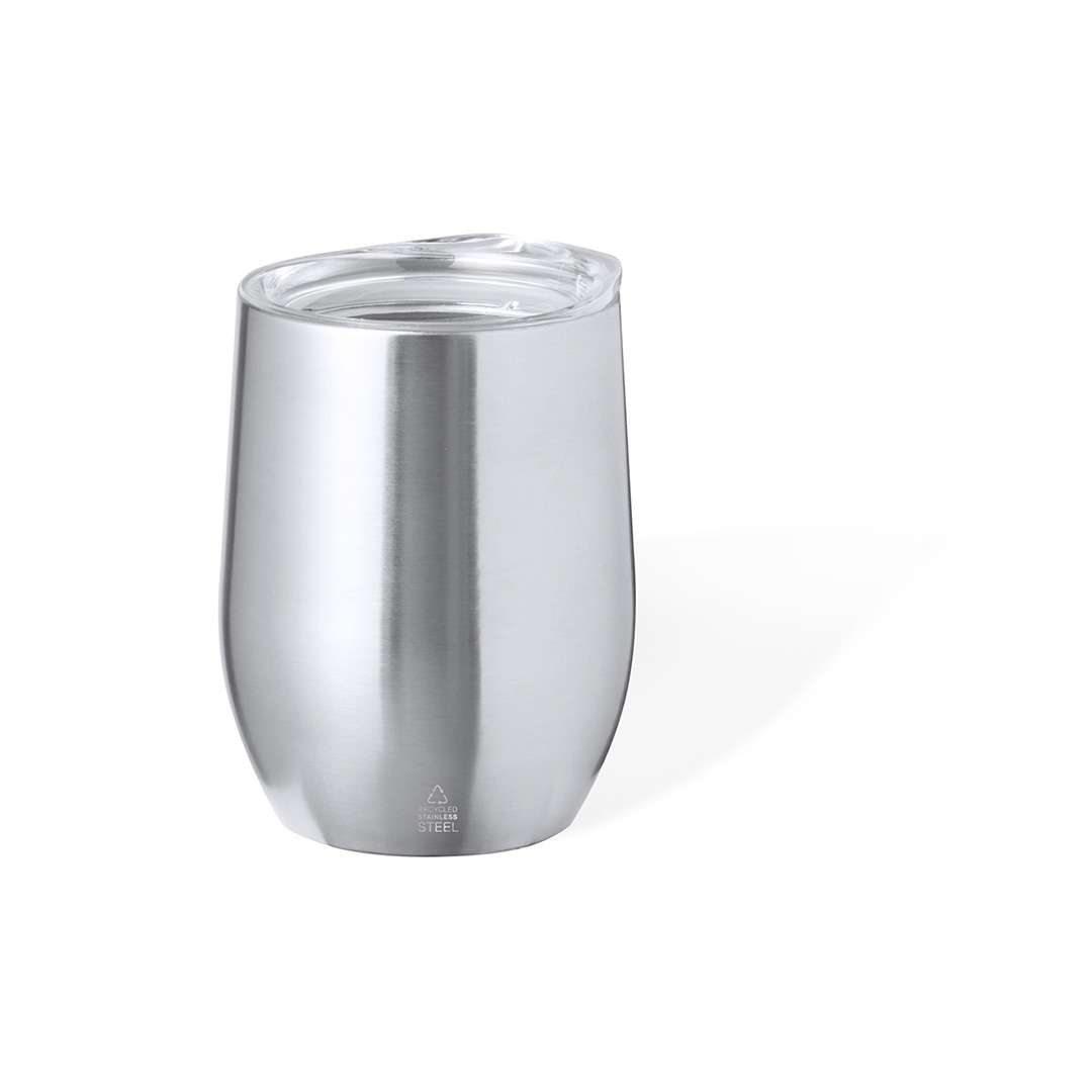 Bicchiere termico da tavolo in acciaio inox riciclato, a doppia parete e con capacità di 340 ml. Include coperchio trasparente con chiusura a scatto e dispenser. È ideale per la tua scrivania, tavolo o qualsiasi superficie dove puoi goderti la tua bevanda preferita. Con logo Recycled Stainless Steel. L'acciaio è uno dei materiali più ricercati e si trova praticamente ovunque, dai prodotti di uso quotidiano alle grandi costruzioni. Le sue innumerevoli proprietà, tra cui la durata e l'alto grado di riutilizzabilità, lo rendono un'alternativa molto apprezzata per le soluzioni di sostenibilità. Opportunamente trattato, consente di ottenere nuove risorse di uso infinito.