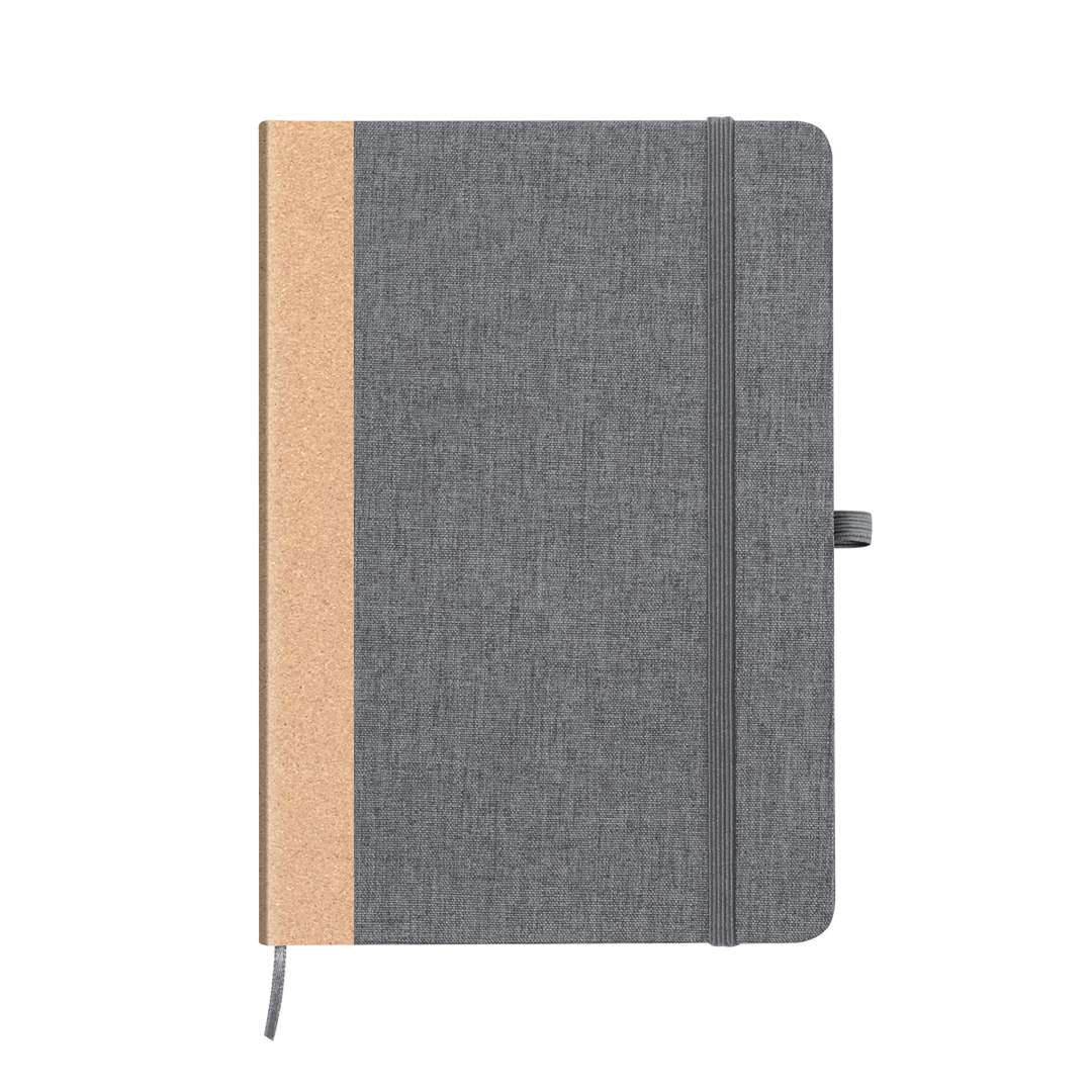 Block notes con copertina rigida in RPET e dorso in sughero. Include interni con 80 pagine lisce, segnalibro, chiusura elastica e portapenne abbinato. Logo RPET sul retro della copertina e disponibile in colori eleganti. Presentato in un sacchetto individuale di carta riciclata.Il materiale RPET è realizzato con plastica riciclata per incoraggiare il riutilizzo dei rifiuti plastici e contribuire alla sostenibilità del pianeta.