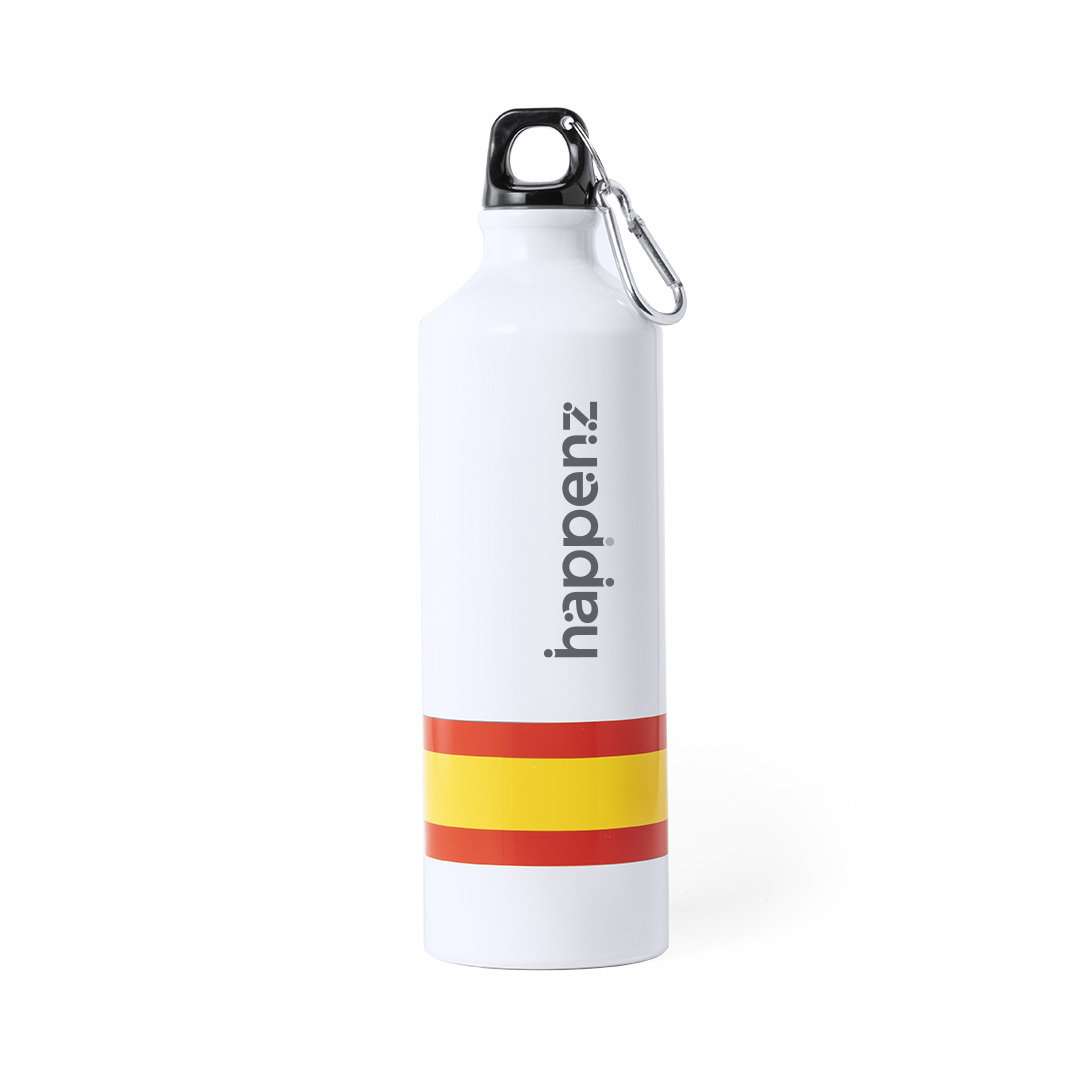 Borraccia dal design spagnolo con corpo bianco. Capacità di 800 ml e finitura in alluminio, con tappo a vite senza BPA e moschettone per il trasporto. Confezionata in una scatola dal design accattivante.