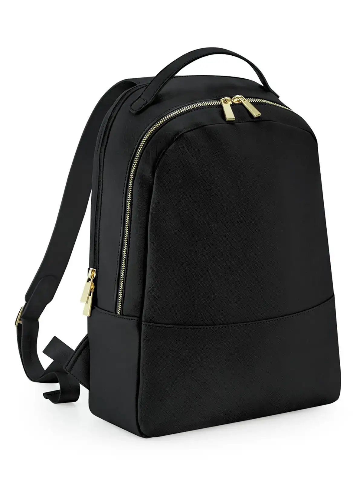 100% simil-pelle PU. Zainetto effetto saffiano, scomparto principale con zip. Tasca interna, portabottiglie interno, tasca separata sul pannello posteriore con cerniera, tasca interna con cerniera. Scomparto imbottito per laptop fino a 14". Fodera morbida, manico, cerniere in metallo dorato lucente, spallacci regolabili in tessuto. Etichetta removibile.
