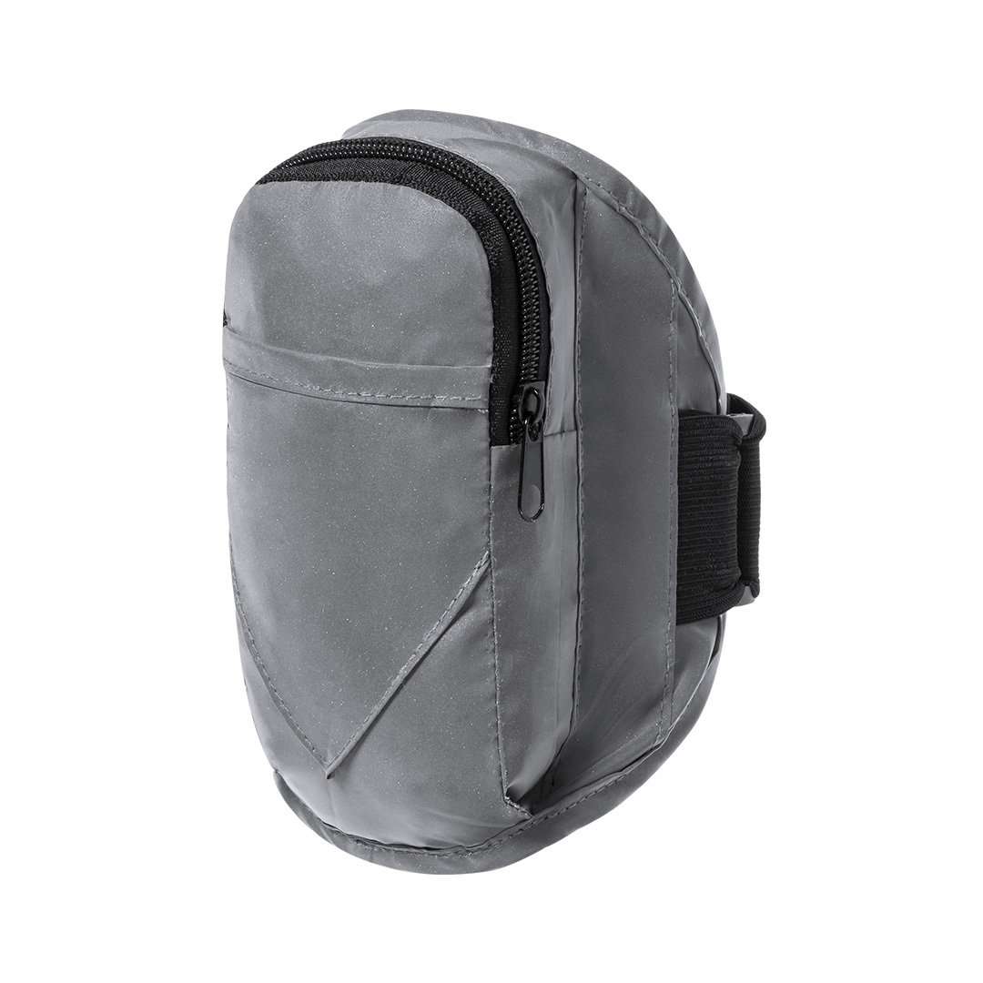 Bracciale sportivo in poliestere 210T, realizzato con un tessuto ad elevata capacità riflettente, grazie a milioni di pigmenti riflettenti e basato sul principio della retro-riflessione, una proprietà della visibilità notturna che consiste nella rifrazione della luce verso la fonte della luce stessa. Tasca principale con zip e tasca frontale con chiusura in velcro. Con cinturino elastico regolabile e resistente all'acqua