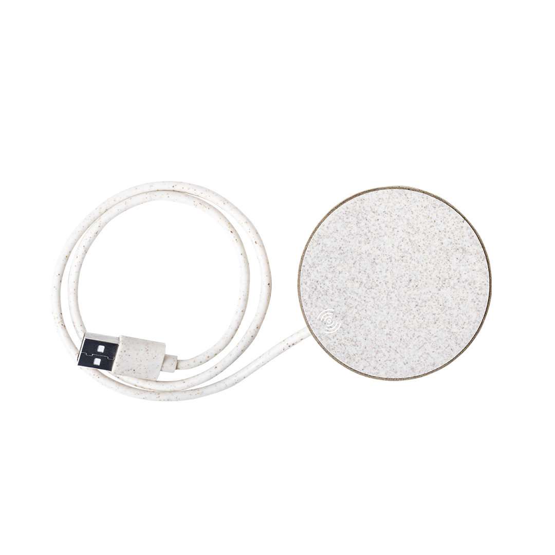 Originale caricatore circolare wireless, della Linea Natura. Involucro in cartone riciclato, per contribuire alla conservazione delle foreste e ridurre notevolmente l'impronta di carbonio, con superficie di ricarica e cavo in fibra di grano. Scomparto interno per conservare il cavo e portarlo ovunque. Indicatore di stato di carica a LED, compatibile con smartphone con tecnologia di ricarica wireless e confezionato singolarmente in un'attraente scatola dal design ecologico, con manuale di istruzioni in inglese e spagnolo.