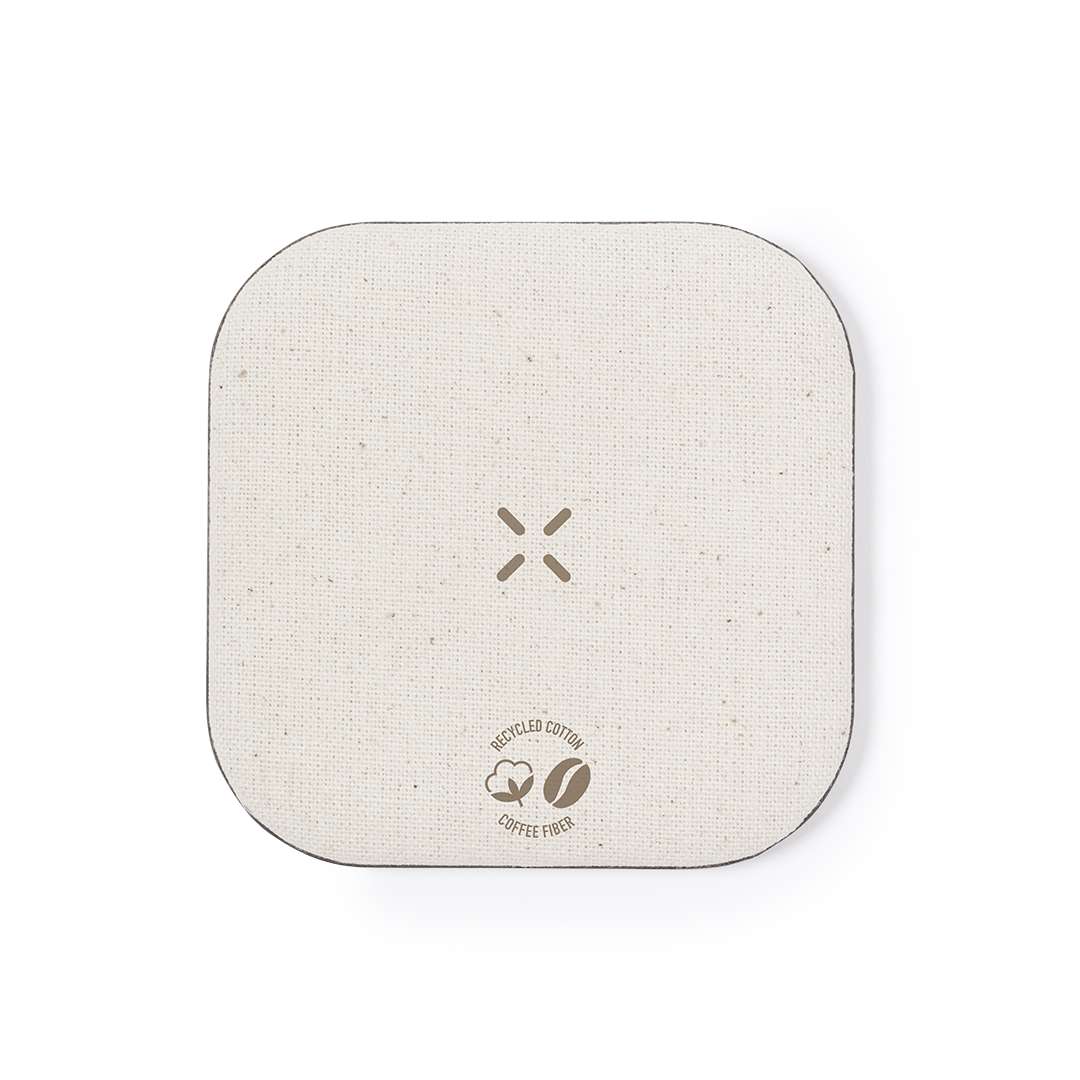 Caricatore wireless realizzato in fibra di caffè e cotone riciclato. Base antiscivolo e compatibile con i dispositivi dotati di tecnologia di ricarica Qi. Capacità di ricarica di 15W, con cavo nero di tipo C incluso. Con loghi in fibra di caffè e cotone riciclato. Presentato in un'attraente scatola dal design kraft, con manuale di istruzioni in inglese e spagnolo.La fibra di caffè è una soluzione circolare ottenuta dall'utilizzo degli scarti della produzione del caffè. Un'alternativa sostenibile che favorisce la riduzione dell'uso della plastica, risparmiando energia nel processo di produzione e contribuendo alla cura dell'ambiente.È disponibile la certificazione GRS (Global Recycled Standard), che garantisce l'origine riciclata del materiale utilizzato per la realizzazione del prodotto.