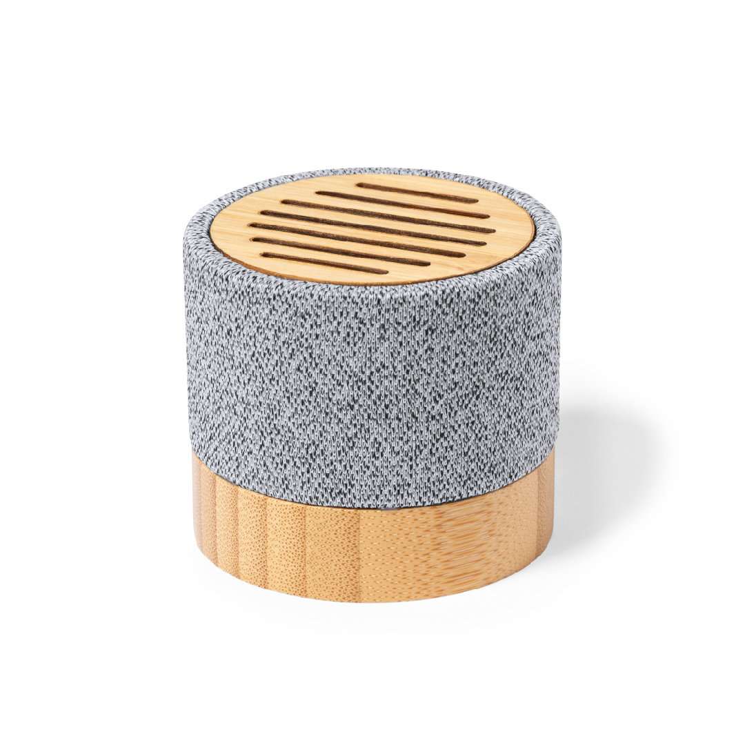 Altoparlante compatto della linea natura con connessione Bluetooth®. Corpo in bambù e poliestere RPET, ricavato da plastica riciclata, per promuovere il riutilizzo dei rifiuti plastici e contribuire alla sostenibilità del pianeta. Potenza di 3W, batteria da 300 mAh e connessione Bluetooth® 5.0. Include un cavo di ricarica di tipo C e un manuale di istruzioni in inglese e spagnolo. Con logo RPET e confezionato singolarmente in una scatola di design kraft.