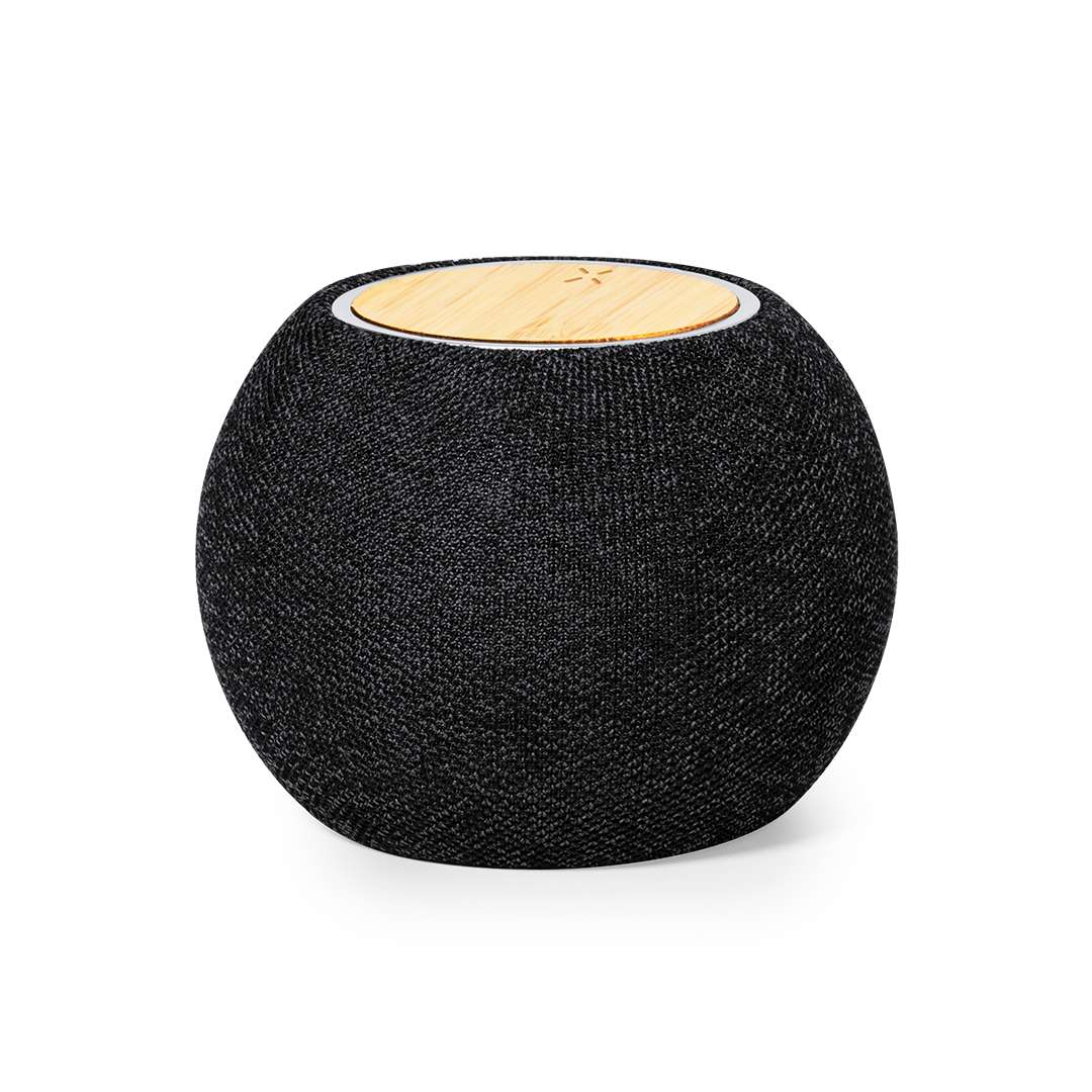 Vivavoce multifunzione con connessione Bluetooth®. Con ricarica wireless a 15W per dispositivi con tecnologia Qi. Corpo in bambù e poliestere RPET, potenza di 5W, batteria da 1200 mAh e connessione Bluetooth® 5.0. Include un cavo di ricarica di tipo C. Con logo RPET e presentato in una scatola individuale dal design kraft. Manuale di istruzioni disponibile in inglese e spagnolo.Il materiale RPET è realizzato con plastica riciclata, promuovendo così il riutilizzo dei rifiuti plastici e contribuendo alla sostenibilità del pianeta.
