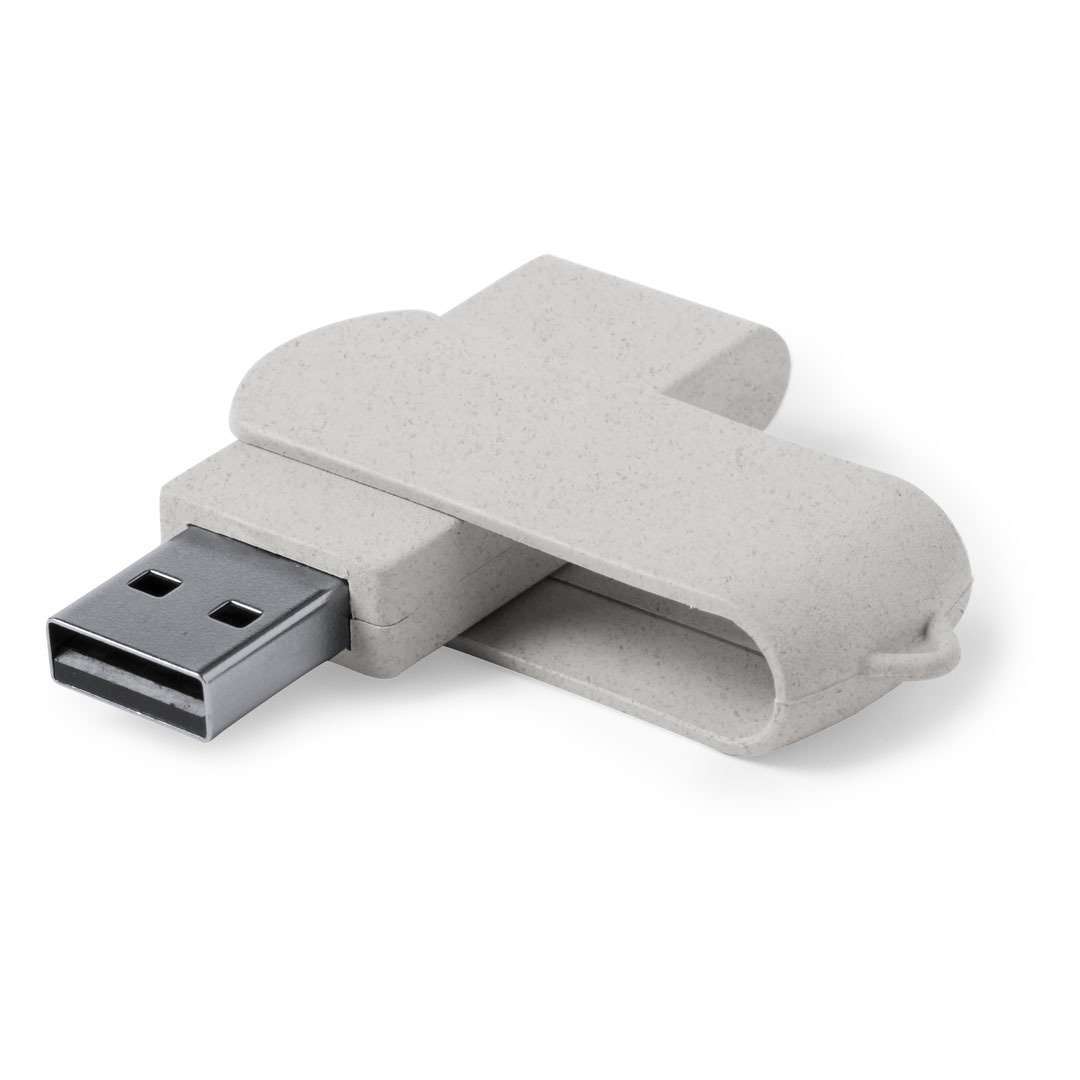 Capacità online di unità flash USB da 16 GB. Corpo e clip in canna di grano, al fine di promuovere l'uso di materie prime naturali e ridurre le emissioni inquinanti, con un meccanismo rotante. Presentato in una custodia ecologica individuale.