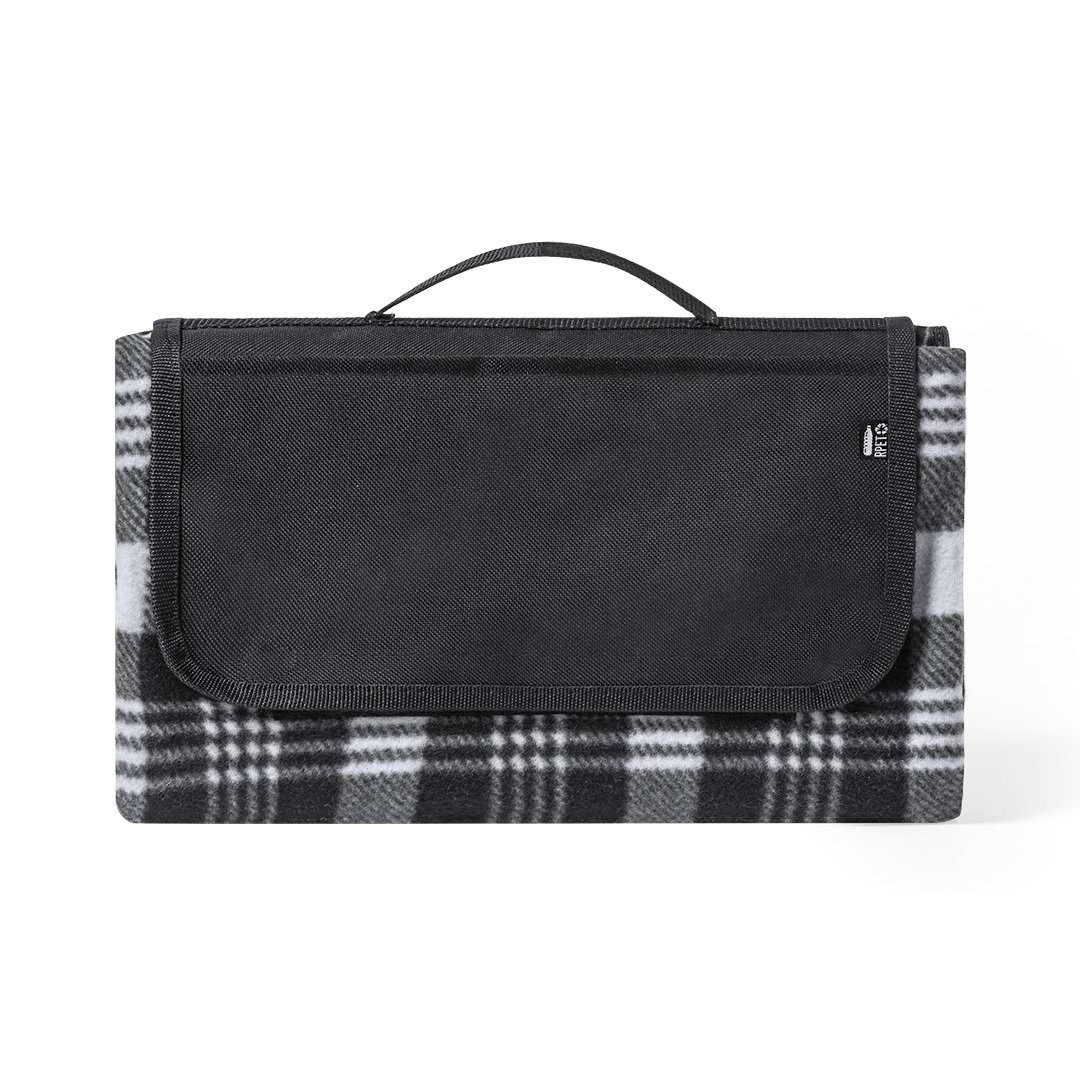 Coperta da picnic di qualità superiore, realizzata in poliestere RPET 160g/m2, ricavato da plastica riciclata per incoraggiare il riutilizzo dei rifiuti plastici e contribuire alla sostenibilità del pianeta. Misura 120x150cm, con un lato di seduta bicolore soft-touch con motivo tartan. Lato terra in PEVA resistente. Facile da piegare e di dimensioni compatte, include maniglia per il trasporto e patta con chiusura in velcro, con badge RPET sull'etichetta.