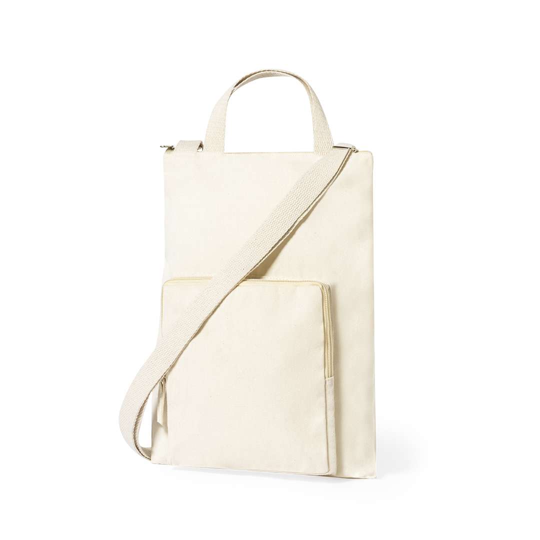 Originale custodia per computer portatile, realizzata in tela resistente con finitura naturale. Scomparto principale con chiusura a zip e maniglia per il trasporto. Con tracolla regolabile abbinata e tasca esterna con cerniera. Adatto a laptop o tablet fino a 15".La tela è un tessuto molto versatile e resistente, realizzato principalmente in cotone. Contribuisce a proteggere l'ambiente, poiché è altamente riutilizzabile grazie alla sua resistenza.