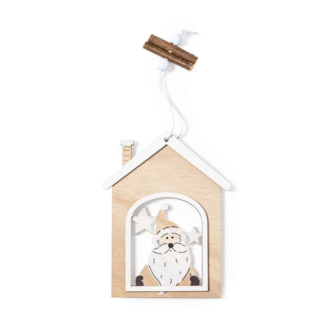 Elegante e moderna decorazione natalizia in legno naturale. Include un accessorio per appenderla ed disponibile in due design: Babbo Natale e motivi natalizi.