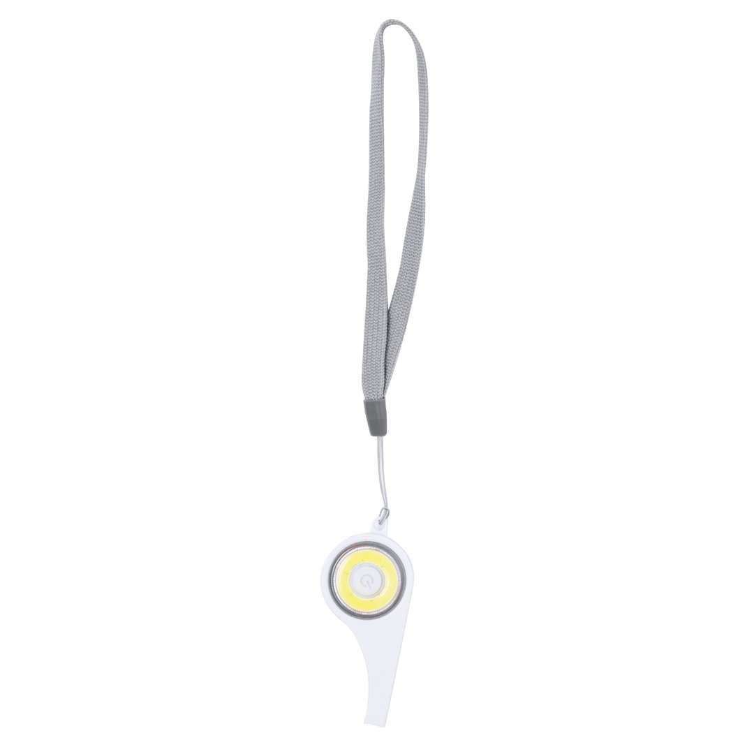 Ingegnoso fischietto multiuso con luce integrata nel corpo. Realizzato in robusto ABS, con 6 luci COB e diverse posizioni di illuminazione: fissa con due livelli di intensità e lampeggiante per una maggiore visibilità. Il cordino consente di trasportarlo comodamente ed è alimentato da una batteria a bottone (inclusa). Presentato in una scatola dal design kraft.