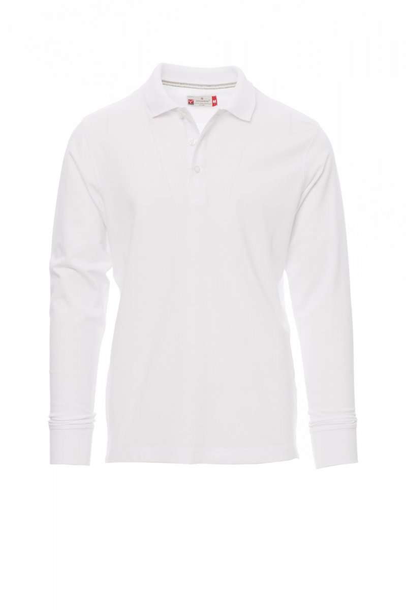 Polo da uomo a manica lunga con 3 bottoni in tinta effetto perlato, colletto e polsino a costine, spacchetti laterali, cuciture del collo coperte con nastro a contrasto, cuciture stretch, nastro di rinforzo laterale, rinforzo sagomato retro collo.