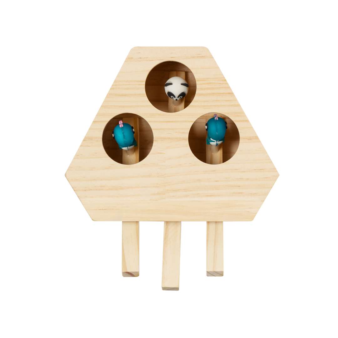 Gioco in legno per animali domestici. Divertente, sicuro e facile da usare: premendo le leve, appaiono 3 simpatiche figure che susciteranno la curiosità di qualsiasi animale domestico. Presentato in una scatola kraft individuale.