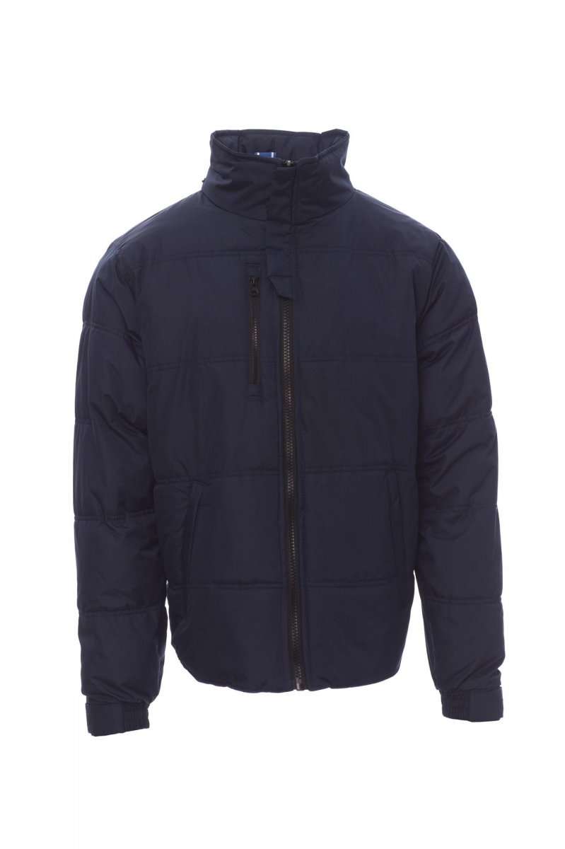 Giubbotto da uomo, zip 8mm in plastica con cursore in metallo, cappuccio richiudibile, polsini regolabli, due tasche laterali con zip, una tasca al petto. Interno: imbottito e in micropile in contrasto