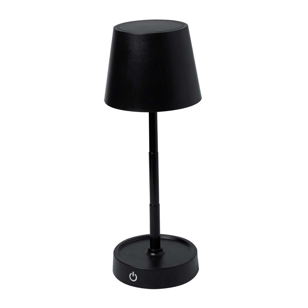 Lampada di design con finitura nera opaca. Include sistema di regolazione dell'intensità luminosa touch e corpo pieghevole per regolarne l'altezza. Equipaggiata con batteria ricaricabile da 800mAh tramite USB Tipo C -cavo incluso- e 12 LED di luce calda. Con pulsante accensione/spegnimento nella parte posteriore.