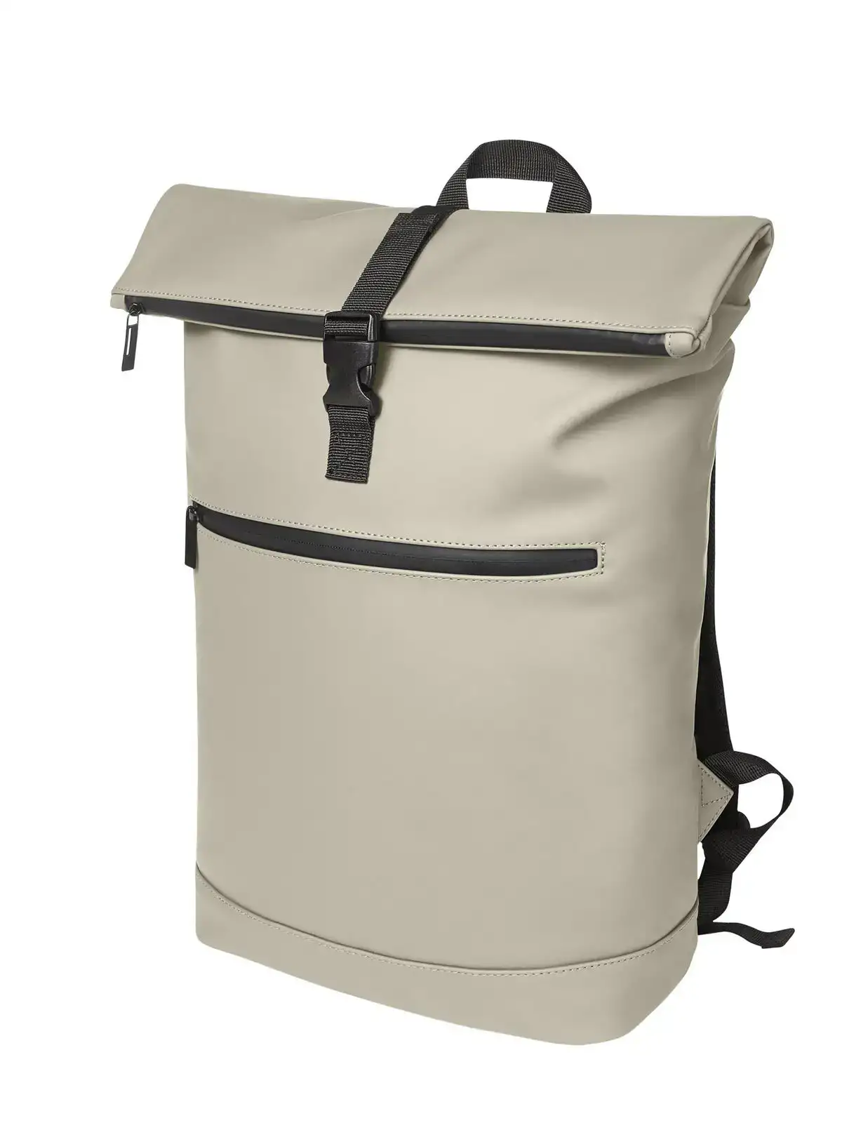 100% poliestere riciclato. Zaino urbano con manico, scomparto principale con fondo rinforzato, chiusure lampo idrorepellenti, scomparto imbottito per notebook con linguetta di gomma, tasca piatta con chiusura lampo, tasca anteriore con chiusura lampo, schienale imbottito. Dimensioni: 28x43x13cm. Capacità: 14litri. Area di stampa: 16x16cm.