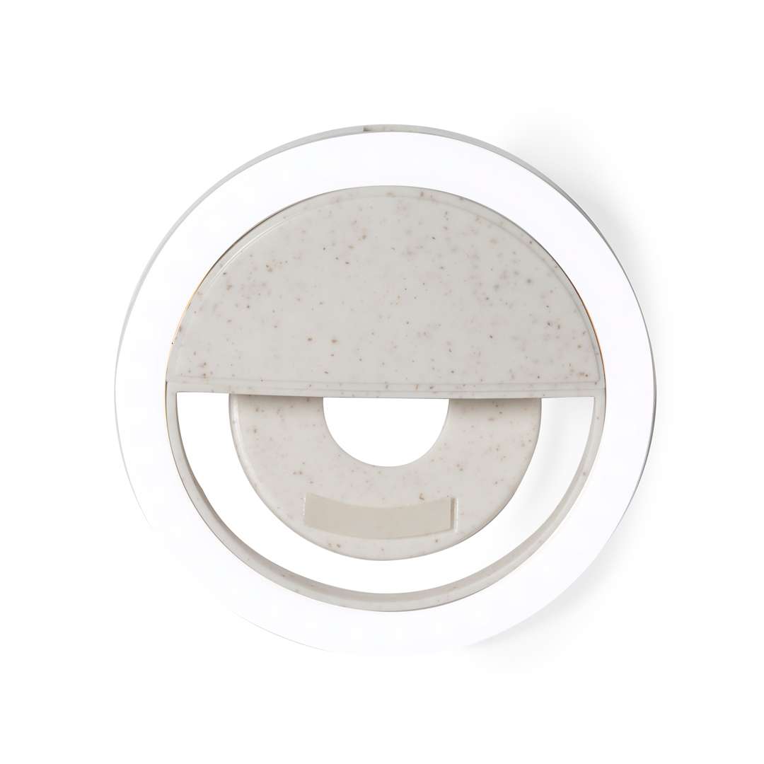 Anello luminoso a LED per smartphone, realizzato in robusta fibra di grano. Regolabile su qualsiasi smartphone, con 36 LED e 3 livelli di intensità luminosa. Batteria da 80 mAh e ricaricabile via USB (cavo Micro USB incluso). Presentato in una scatola dal design accattivante, con manuale di istruzioni disponibile in inglese e spagnolo.La fibra di grano promuove l'uso di materie prime naturali, riducendo così le emissioni inquinanti.