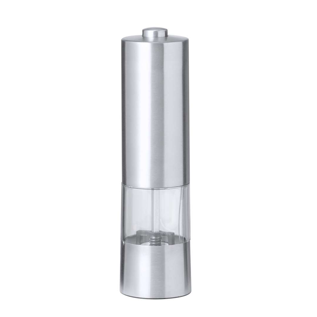 Macina sale e pepe elettrico in acciaio inox. Ideale per aggiungere la spezia più desiderata in scomparto da 70 ml, insaporire premendo il pulsante superiore e regolare la dimensione dei grani. Dotato di finestra per visualizzare la quantità di spezie rimanenti e di luce LED. Alimentato da 4 batterie AAA (non incluse) e presentato in una scatola di design kraft.
