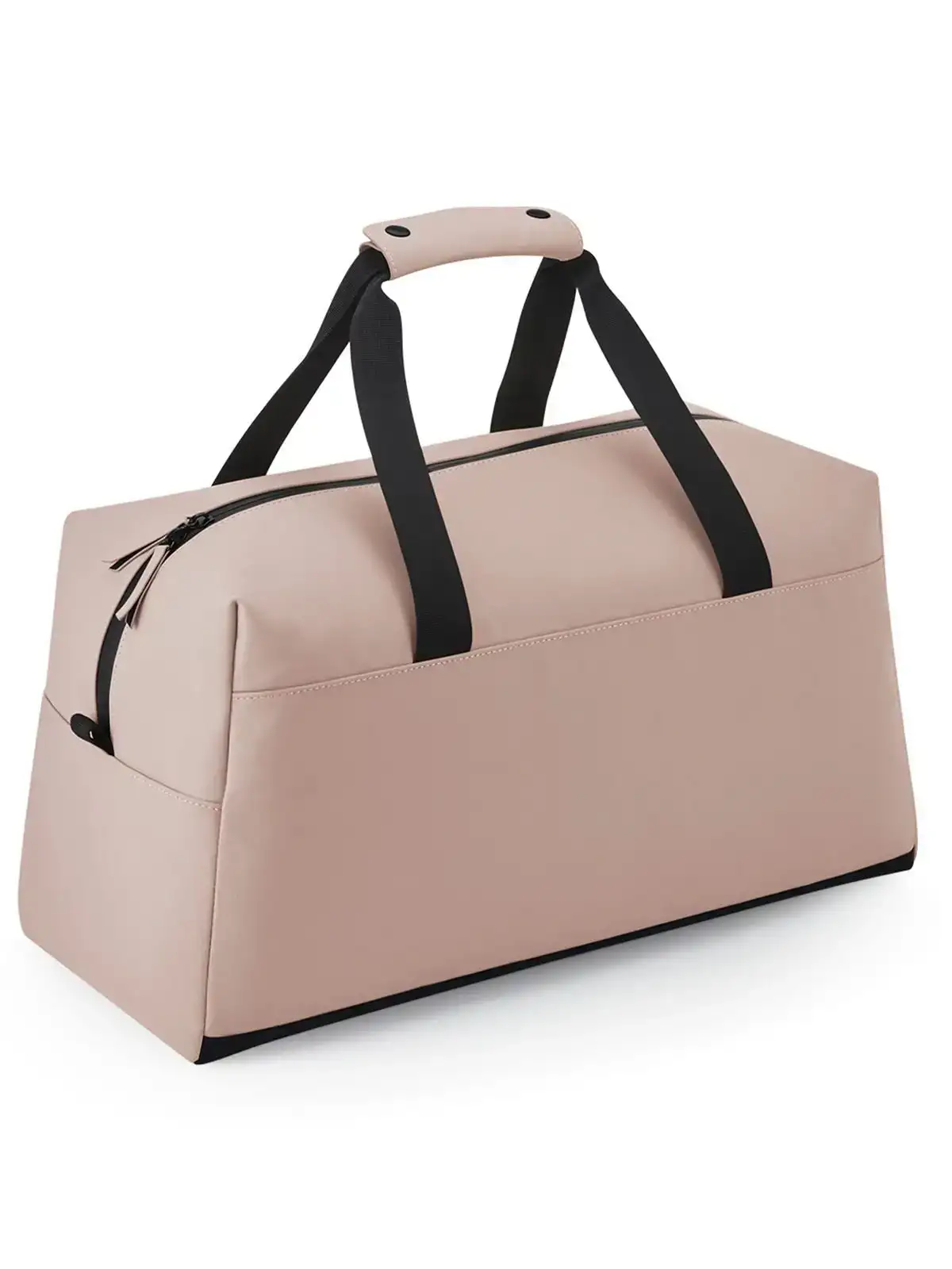 100% poliestere riciclato con rivestimento opaco in poliuretano. Senza PVC. Borsone in tessuto idrorepellente, in stile minamalista, con scomparto principale extra lungo con cerniera, tasca interna con cerniera, pannello di fondo a doppio strato per una maggiore resistenza, manici in fettuccia, involucro porta manici in tessuto, può essere portato a mano o a tracolla, etichetta removibile per cambiare più facilmente il marchio. Dimensioni: 53 x 24 x 27 cm. Capacita': 28 litri.