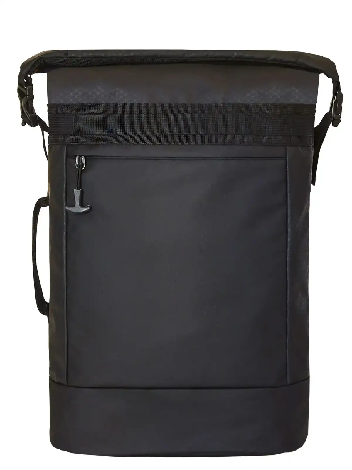 RPET 600d. rPET 600d/PU. Tutti materiali sono conformi alle ultime specifiche dell'UE. Senza PVC. Zaino roll-top elaborato, con scomparto principale con cerniera e fibbie laterali, tasca interna imbottita, ampia tasca frontale con zip, fascia funzionale sul davanti, anello di aggancio posteriore per maniglia trolley, scomparto con cerniera nascosto, sistema di trasporto imbottito con fascia pettorale regolabile in altezza, maniglia su entrambi i lati e sul retro. Dimensioni: 29 x 41 x 15 cm. Capacità: 18 lt.