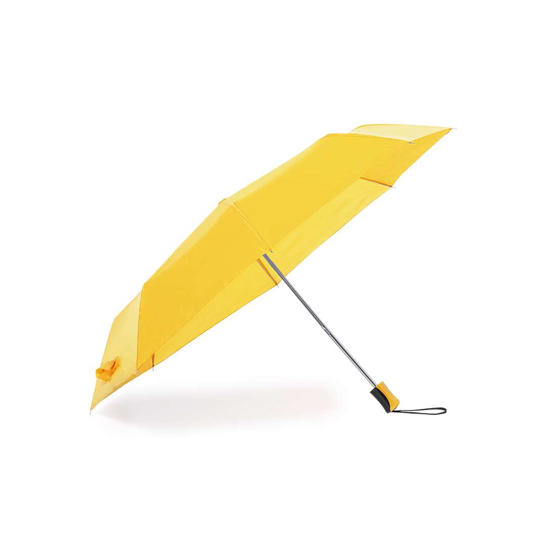 Ombrello pieghevole a 8 pannelli in poliestere 190T. Apertura manuale, con stecche in metallo color argento e chiusura in velcro. Manico ergonomico con cinghia di trasporto e copertura protettiva abbinata. Disponibile in un'ampia gamma di colori. Presentato in una polybag individuale riciclata.
