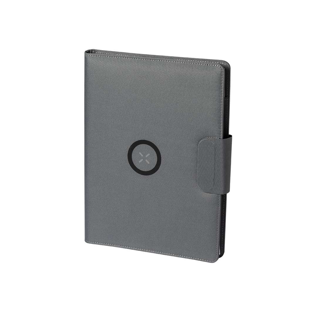 Cartella/block note multifunzionale in poliestere 300D RPET, realizzato con plastica riciclata, che promuove il riutilizzo dei rifiuti plastici e aiuta la sostenibilità del pianeta. Con chiusura magnetica ed etichetta RPET allinterno. Caricatore wireless da 10W integrato nella copertina, con chiusura magnetica per utilizzare il dispositivo durante la ricarica e anello adesivo incluso, compatibile con tutti i dispositivi con tecnologia Magsafe e Qi.Batteria integrata con capacità di carica di 5.000 mAh, con porta di ingresso/uscita di tipo C e indicatore di stato di carica a LED, cavo incluso.Allinterno, supporto per smartphone e vari scomparti per carte, tra cui un portapenne e un blocco note A4 con 20 fogli con layout a righe. Presentato in una scatola dal design accattivante.Le capacità indicate in tutti i nostri power bank sono reali tutti incorporano batterie non riciclate di grado A, con una durata di almeno 500 cicli di ricarica e conformi alle normative CE. Inoltre, sono prodotte secondo gli standard RoHS e in conformità ai seguenti requisiti di sicurezza: Sistema di protezione da sovraccarico del power bank. Sistema di protezione completa contro le scariche, che aumenta la durata del power bank. Sistema di blocco per prevenire i cortocircuiti. Sistema di trasferimento costante della carica, in base alla capacità del dispositivo di destinazione.