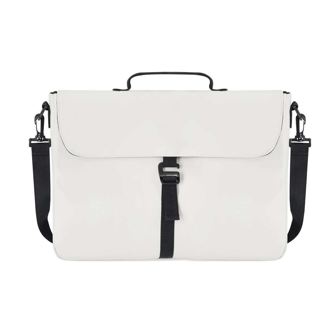 Portadocumenti in PU morbido. Ampia capacità interna con scomparto imbottito per laptop fino a 15 pollici. Con sistema di chiusura a fibbia. Include tracolla rimovibile e imbottita.