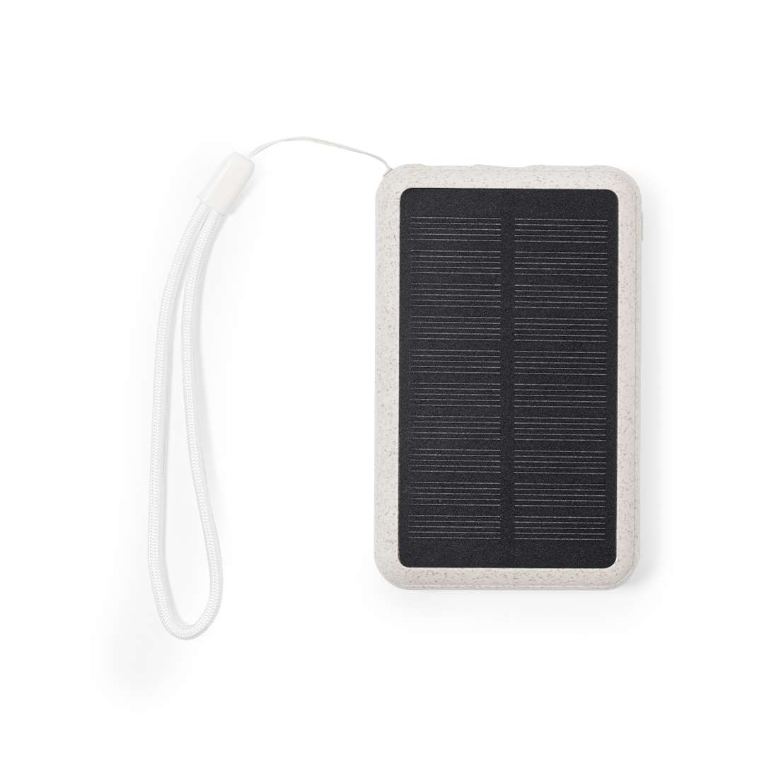 Power Bank ricaricabile in fibra di grano. Con capacità di carica di 5.000 mAh. Con connettore di ingresso/uscita di tipo C + uscite USB. Include un pannello fotovoltaico che consente di ricaricare la batteria in qualsiasi spazio esterno senza necessità di collegamento. Presentato in una scatola dal design kraft.Ingresso/uscita di tipo C: 5V DC 2,4A, 12W2 uscite USB: 5V DC 2.4A, 12WLe capacità indicate su tutte le nostre batterie ausiliarie esterne sono reali e comprendono tutte batterie di grado A e non riciclate, con una durata di almeno 500 cicli di carica e conformi alla normativa CE. Inoltre, sono prodotte secondo gli standard RoHS e in conformità ai seguenti requisiti di sicurezza:Sistema di protezione da sovraccarico del power bank.Sistema di protezione dalla scarica completa per una maggiore durata del power bank.Sistema di blocco per prevenire i cortocircuiti.Sistema di trasferimento costante della carica, in base alla capacità del dispositivo di destinazione.La fibra di grano promuove l'uso di materie prime naturali, riducendo così le emissioni inquinanti.