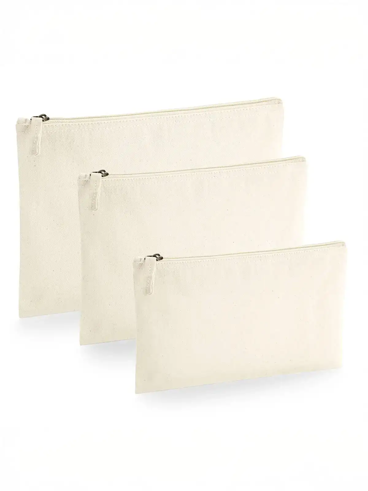 100% cotone riciclato. Pochette con Zip in metallo anticato per un effetto vintage. Etichetta strappabile. Dimensioni: S: 20x11,5 cm, M: 22x16 cm, L: 28x20 cm
