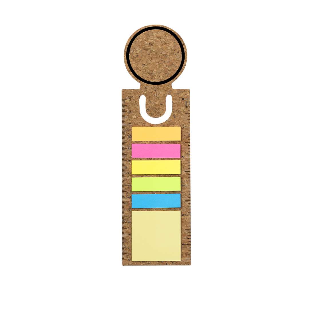 Righello segnalibro in sughero con note adesive. Include 90 note adesive in vari colori e dimensioni.Realizzato con elementi vegetali per promuovere l'utilizzo di materie prime naturali e ridurre le emissioni inquinanti.