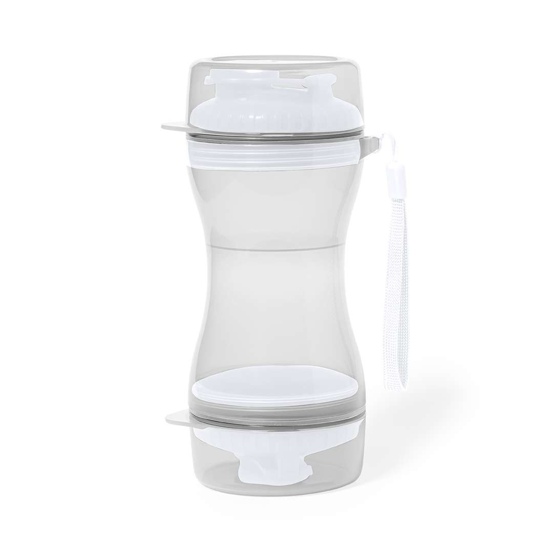 Pratico set per animali domestici in ABS resistente. Con due scomparti separati da 330 ml e 280 ml, con tappo a vite per la sicurezza e dispenser inclusi. Dispone inoltre di due coperchi da utilizzare come ciotola. Confezionato singolarmente in una scatola dal design kraft.