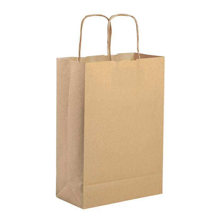 shopper in carta naturale ; maniglia ritorta ; soffietto ; portata 5,5kg ; tecnica di stampa consigliata: serigrafica