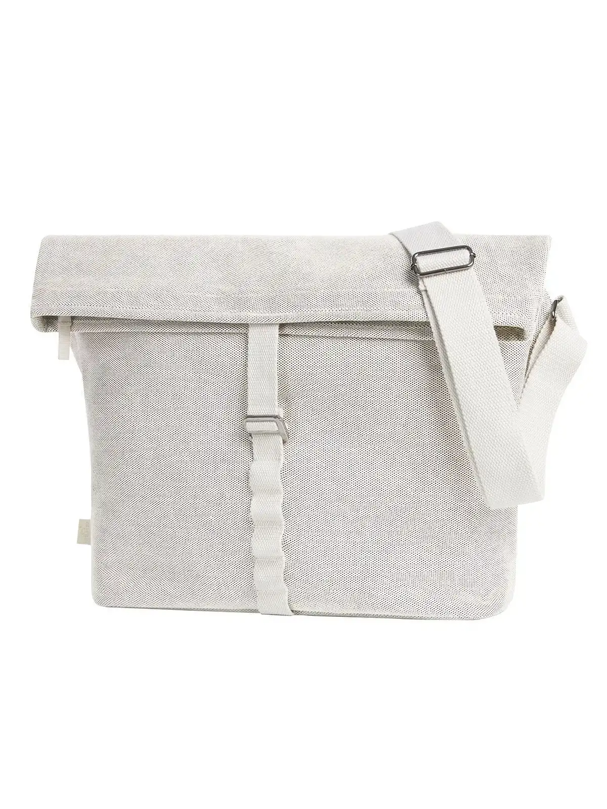 Cotone-Poliestere. Cotone/poliestere. Tracolla con ampio scomparto principale con chiusura lampo e chiusura metallica, imbottito sul retro, fondo imbottito, tasca a inserto piatta, tasca a inserto con chiusura lampo sul retro, spallaccio di lunghezza regolabile, accessori metallici. Dimensioni: 35x30x13 cm. Area personalizzabile: frontale 28x18 cm.