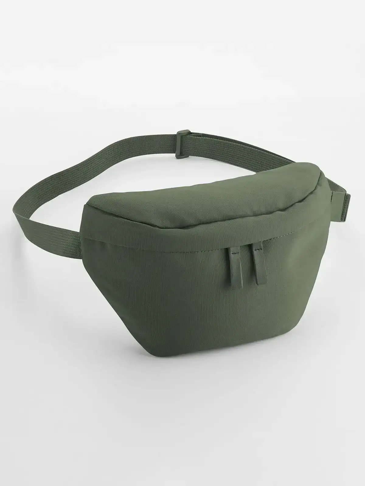 100% poliestere riciclato. Marsupio in poliestere riciclato certificato GRS, tessuto idrorepellente, stile minimalista, apertura zip bilaterale, tasca posteriore con zip, taschino interno, cinturino in vita completamente regolabile. Dimensioni: 25x16cm. Capacità: 1 litro. Area stampabile: 16x9 cm massimo. Etichetta strappabile.
