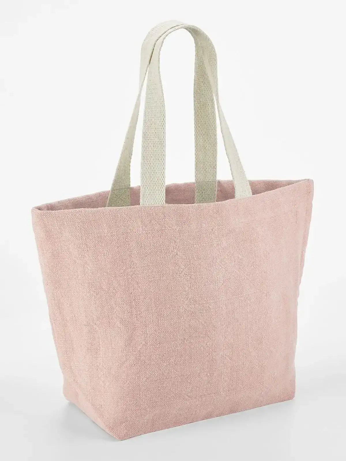 100% Juta. Borsa mare con taschino interno e manici per portala a mano o in spalla. A causa della natura del tessuto i colori possono variare. Lunghezza del manico: 63 cm. Dimensioni: 35x37x18cm. Capacità: 34 litri. Area di stampa: 25x30cm.Etichetta strappabile.
