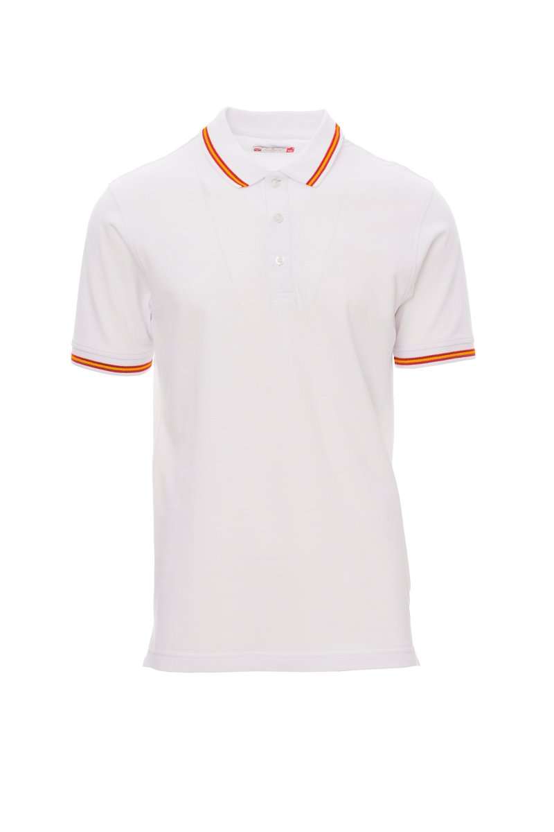 Polo unisex a manica corta a 3 bottoni in tinta, collo e bordo manica con fine profilo tricolore in contrasto, colletto e bordo manica a costine, spacchetti laterali con cucitura di rinforzo, cuciture del collo coperte, nastro di rinforzo laterale, cuciture stretch, rinforzo sagomato retro collo.