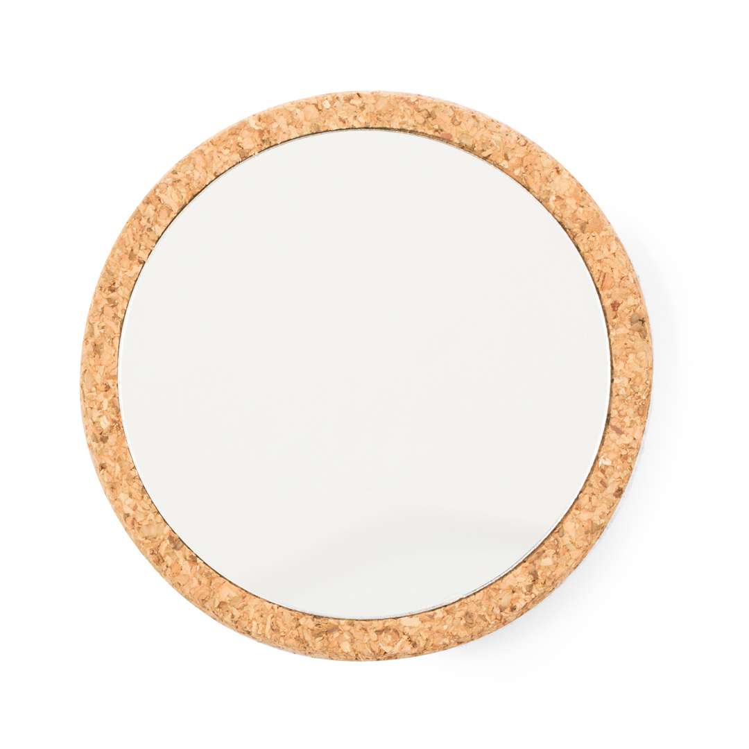 Specchio 1X in sughero. Pratico specchio portatile rivestito in morbido sughero e presentato in una scatola individuale dal design kraft.