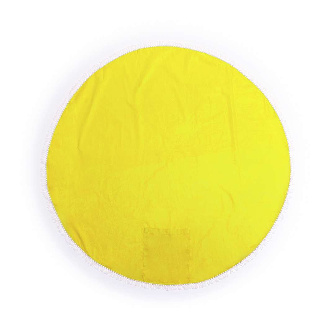 Stuoia in materiale cotone da 125g/m2 con un originale design circolare dai colori vivaci e finitura a frange.