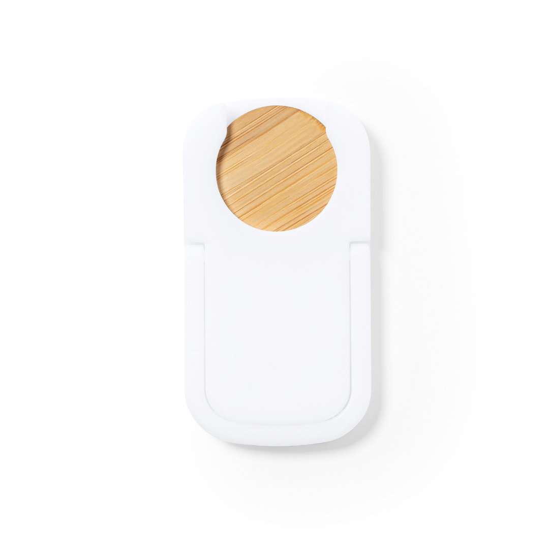 Supporto multifunzione per smartphone con moneta per carrello integrata e anello/supporto pieghevole. Corpo in resistente ABS con finitura bianca e moneta in bambù. Con un'adesione adesiva extra forte e senza residui quando si stacca dal dispositivo.