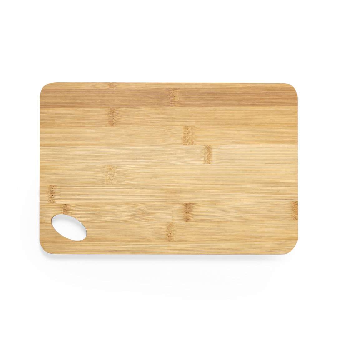 Tagliere della linea Natura in bambù lucidato, ideale per il taglio e la presentazione, con fustella per una facile manipolazione e per appendere.
