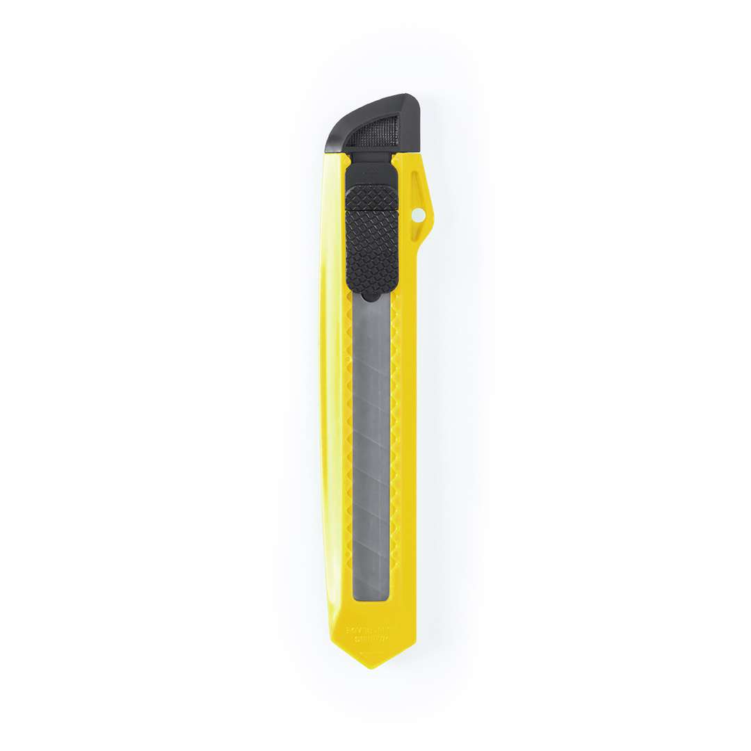 Taglierino con lama larga e impugnatura ergonomica fustellata. Cappuccio rimovibile per la regolazione del taglio della lama.