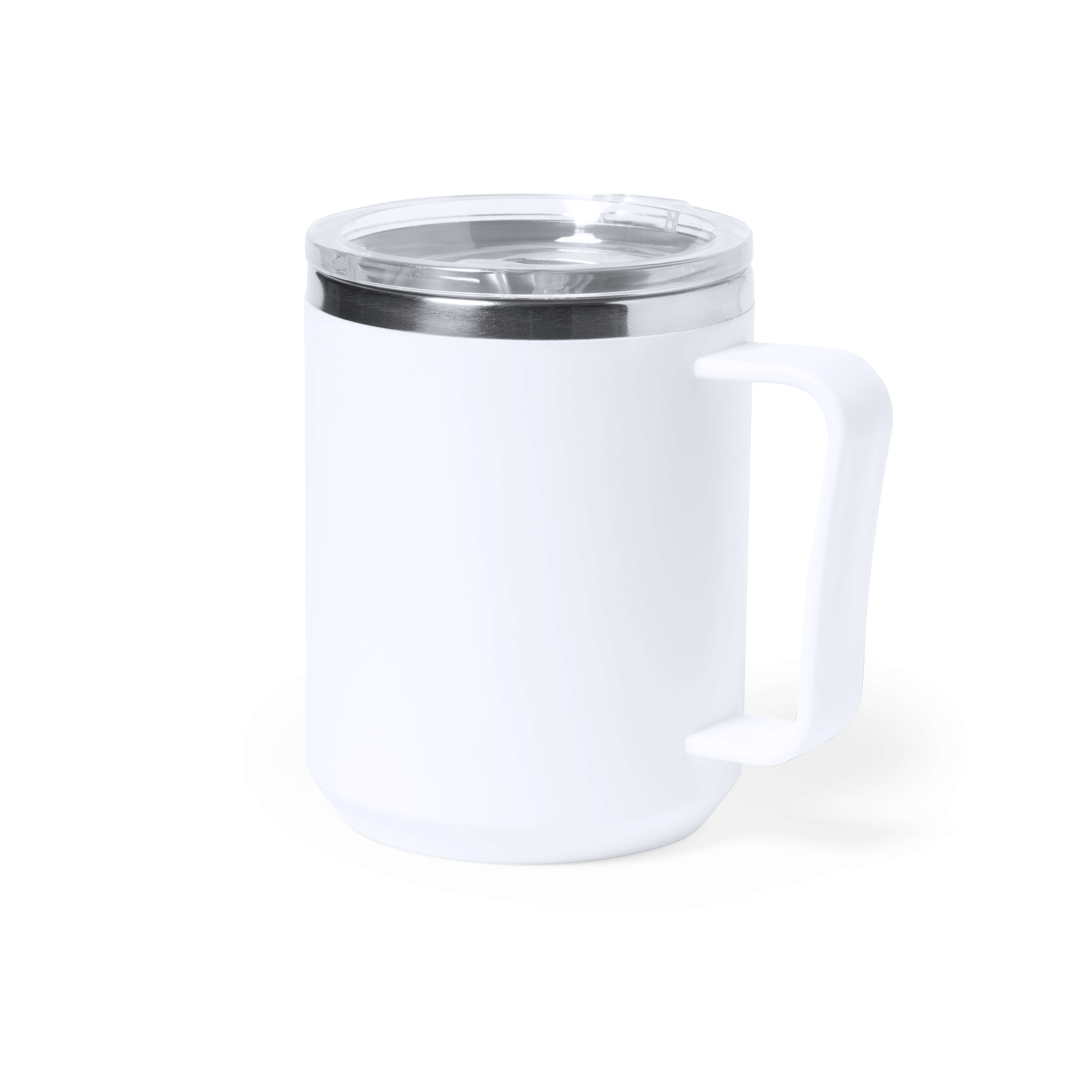 Tazza da tavolo in acciaio inox a doppia parete con capacità di 350 ml di colore opaco. Esterno in resistente PP, con dispenser nel coperchio e apertura facilitata. Senza BPA. È ideale per la tua scrivania, tavolo o qualsiasi superficie dove puoi goderti la tua bevanda preferita.