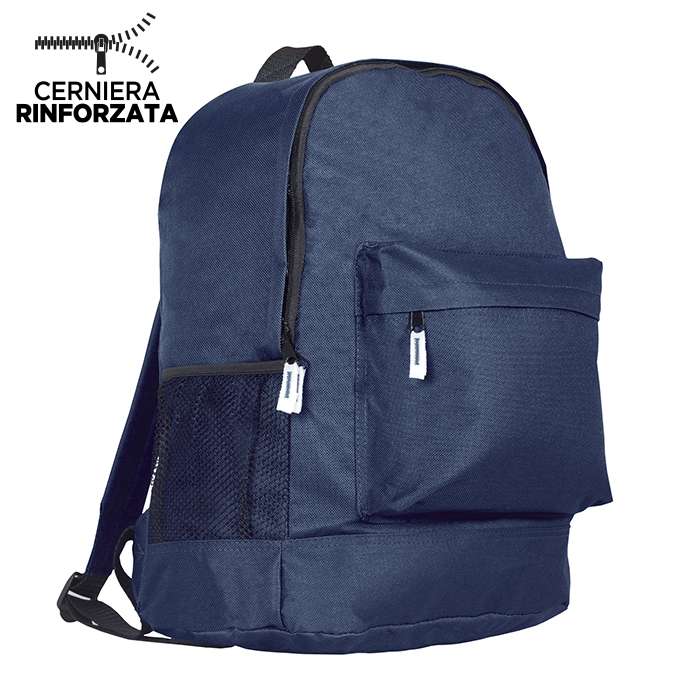 zaino nylon 600D ; tasca anteriore ; tasca laterale in materiale traforato ; spallacci e retro imbottiti ; tecnica di stampa consigliata: serigrafica - transfer
