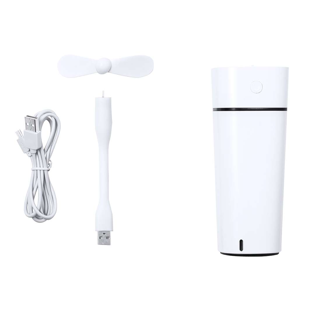 Elegante umidificatore decorativo con una capacità di 240 ml. Dispone inoltre di luci LED con due posizioni di illuminazione (fissa e lampeggiante). Include un pratico cavo di alimentazione USB. Confezionato singolarmente in una scatola kraft di design.